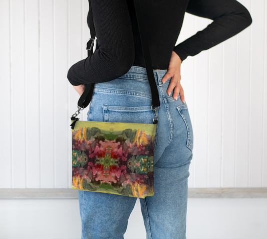 Imperial Peonies Cranberry Vegan Leather Crossbody