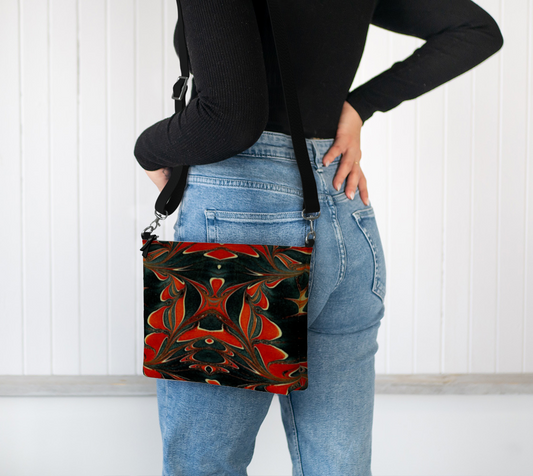 Cranberry Harlequin Vegan Leather Crossbody Purse