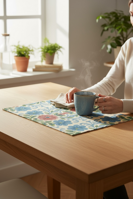 This pattern is a nod to rustic French florals twirled with vines in a tapestry pattern combining the colors of the French countryside.