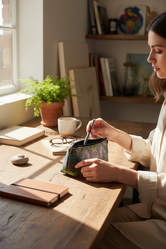 Complement yourself in art with Lilac Waterlilies, an ode to the dreamy world of Impressionism. Inspired by Monet’s garden musings and the soft brushstrokes of plein-air painting, this piece blends violet, green, and warm floral tones in a textured, painterly print.