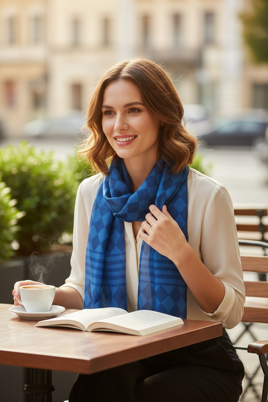 Imperial Peonies Cranberry Black Check Silk Long Scarf