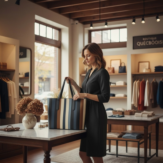 This pattern incorporates warm natural earthy colored stripes with cool neutrals evoking the color of earth and water to create a sophisticated balanced linear design.