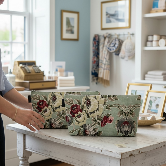 Immerse yourself in the delicate beauty of the Sea Foam Roses pattern, where classic elegance meets contemporary flair. This design showcases an array of lush vintage roses in soft pink hues, gracefully entwined over a serene sea foam green backdrop. The composition evokes the timeless allure of a Nantucket garden in full bloom, offering a sense of tranquility and refined sophistication.