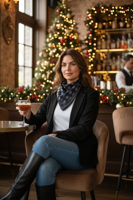 Midnight Argyle Silk Square Scarf