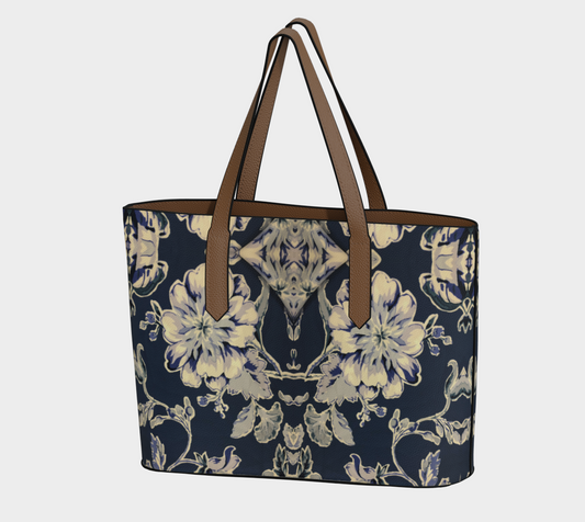 Blue Fleur Damask Vegan Leather Tote Bag