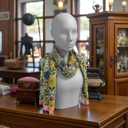 Blue Fleur Damask Silk Long Scarf