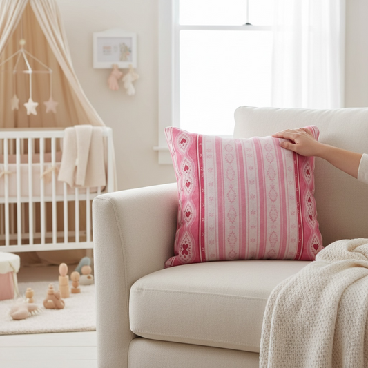 Sweetheart Folk Stripe 18" x 18" Pillow Cover