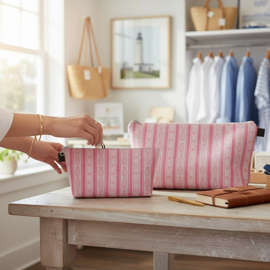 Songbird Bloom Pink Set: Canvas Tote & Makeup Bag