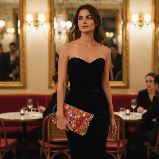 Imperial Peonies Tangerine Vegan Leather Makeup Bag
