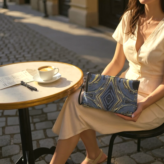 Royal Blue Harlequin Vegan Leather Clutch Wristlet