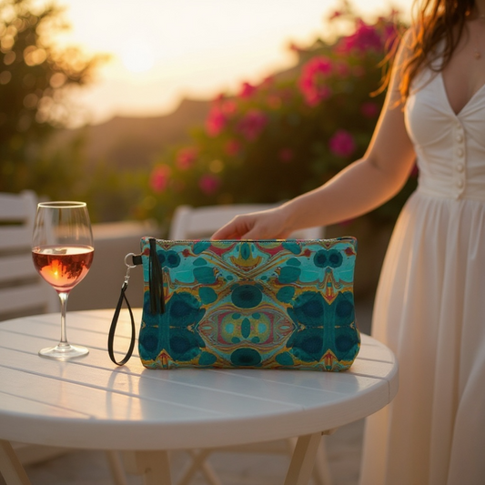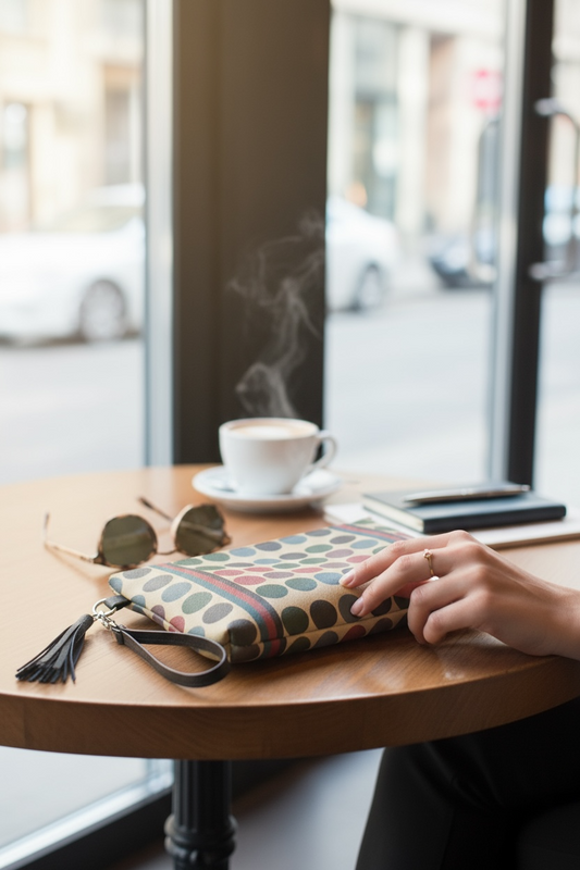 Retro Dotscape Vegan Leather Clutch Wristlet