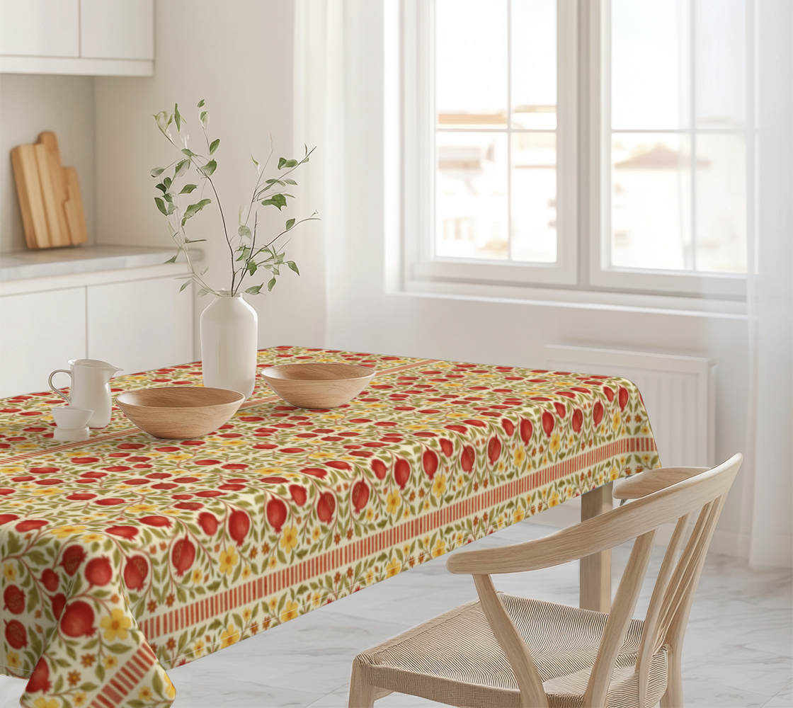Bring a touch of art to your table with our luxurious cotton sateen tablecloth. Digitally printed for rich, lasting color and crafted with a double rolled hem, it adds effortless elegance to any gathering—from everyday meals to special occasions.