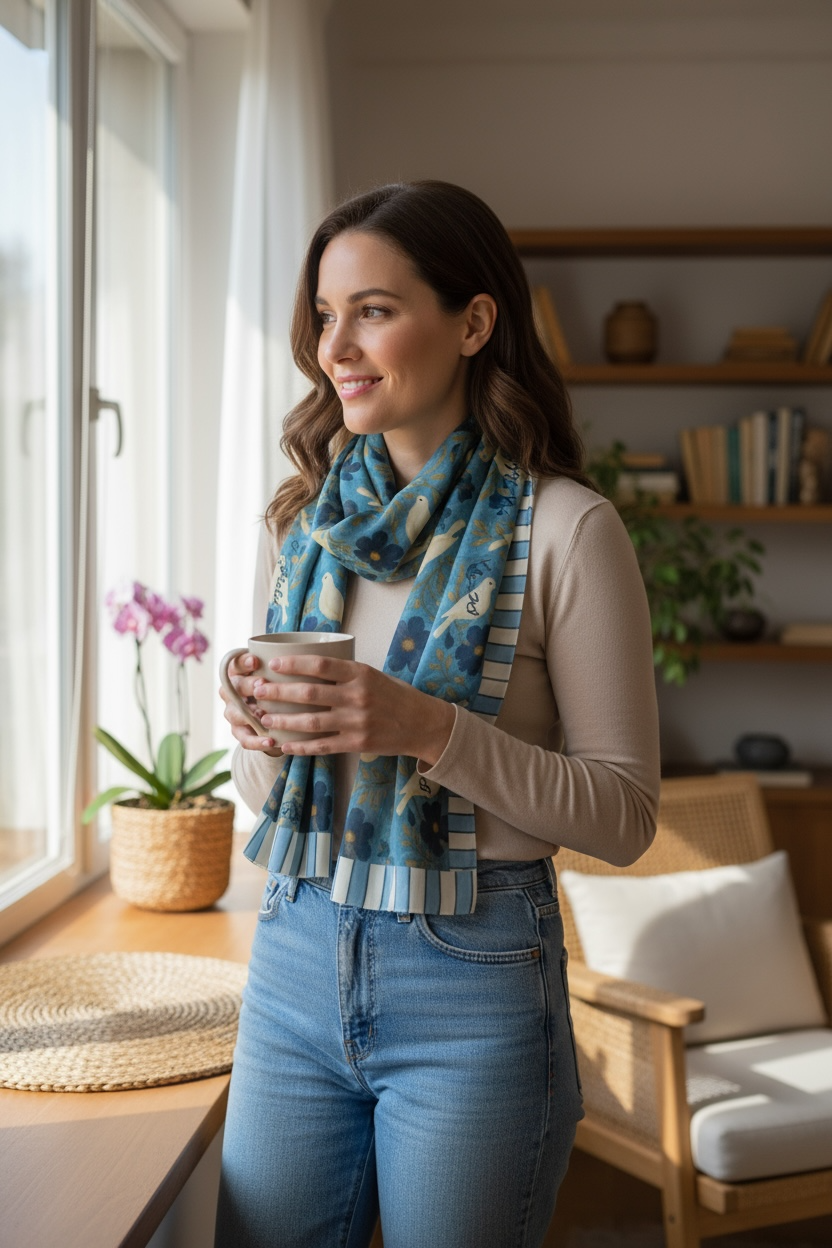 Wrap yourself in a brushstroke of elegance. Whether styled as a headscarf, neck tie, or draped over the shoulders, it’s a wearable canvas designed for the modern muse.