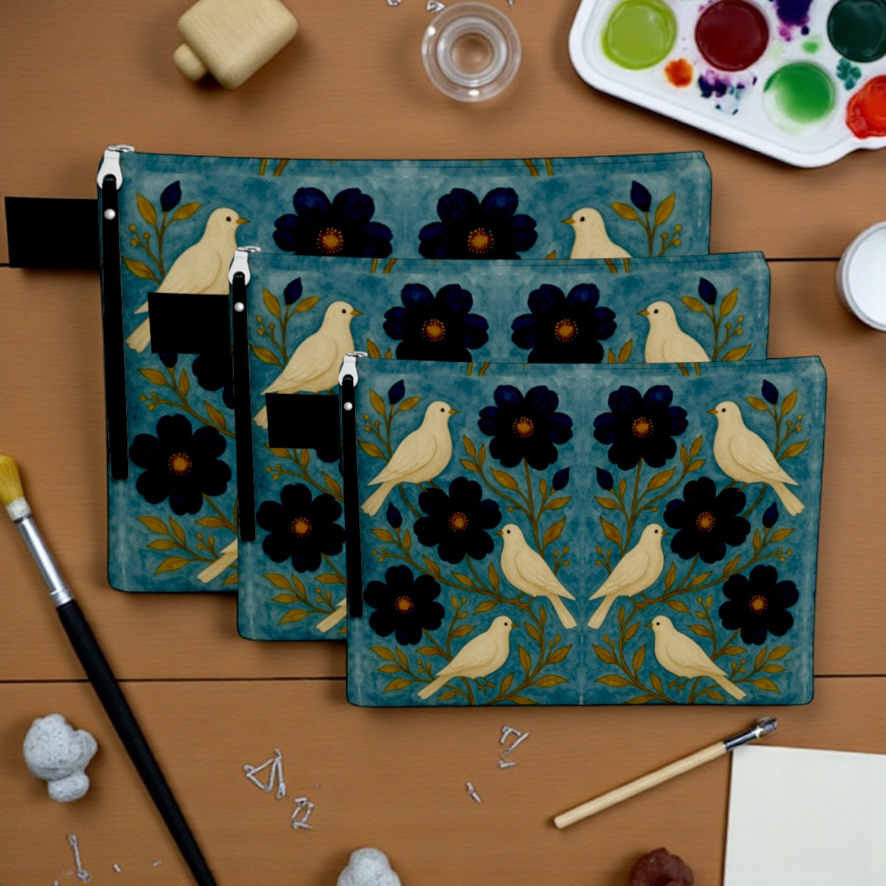 Carry-all zipper pouches featuring printed artwork. Denim-lined carry-alls come in 3 handy sizes to make toting and organizing almost anything effortless whether you're traveling or using these inside your totes or backpacks.