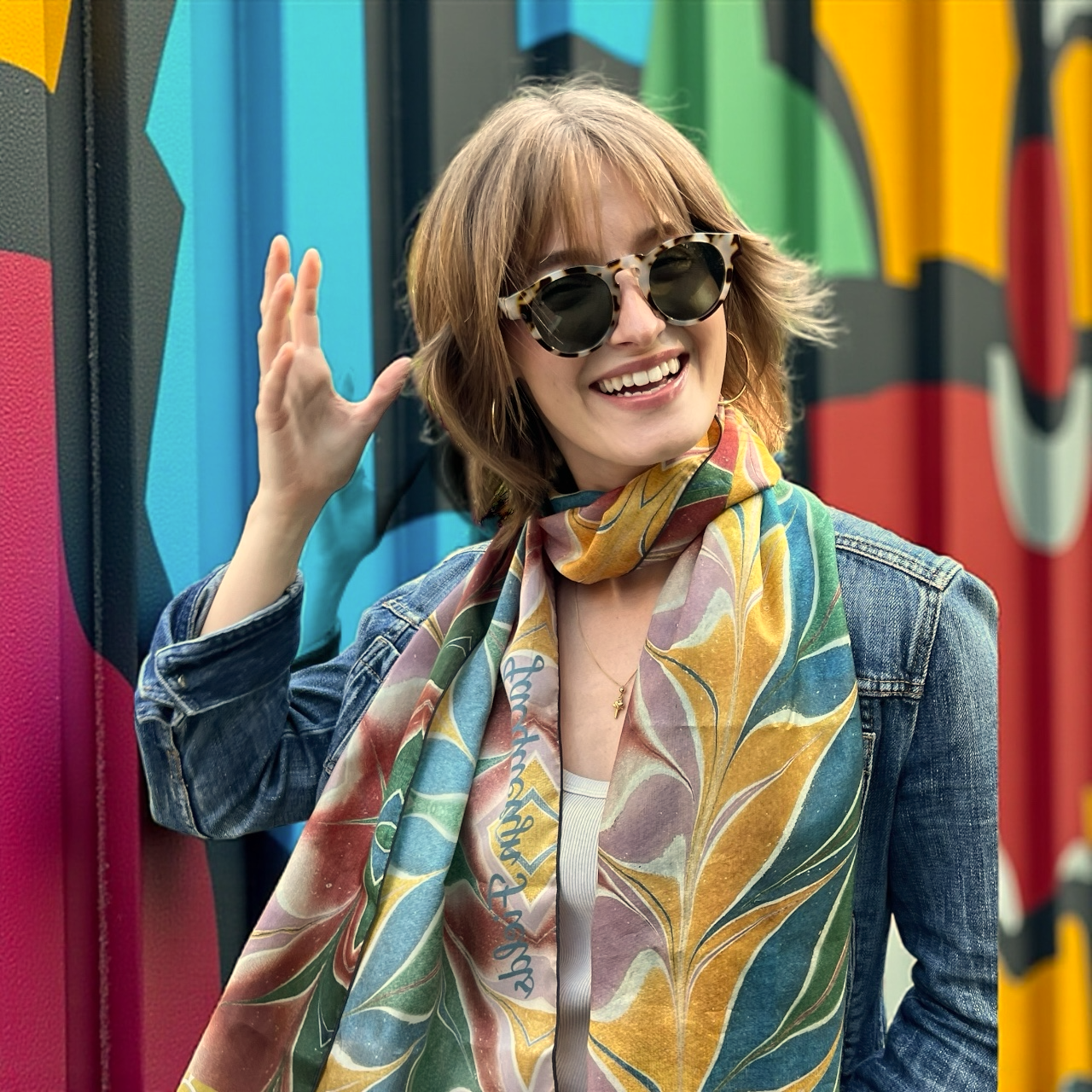 Wrap yourself in a brushstroke of elegance. Whether styled as a headscarf, neck tie, or draped over the shoulders, it’s a wearable canvas designed for the modern muse.