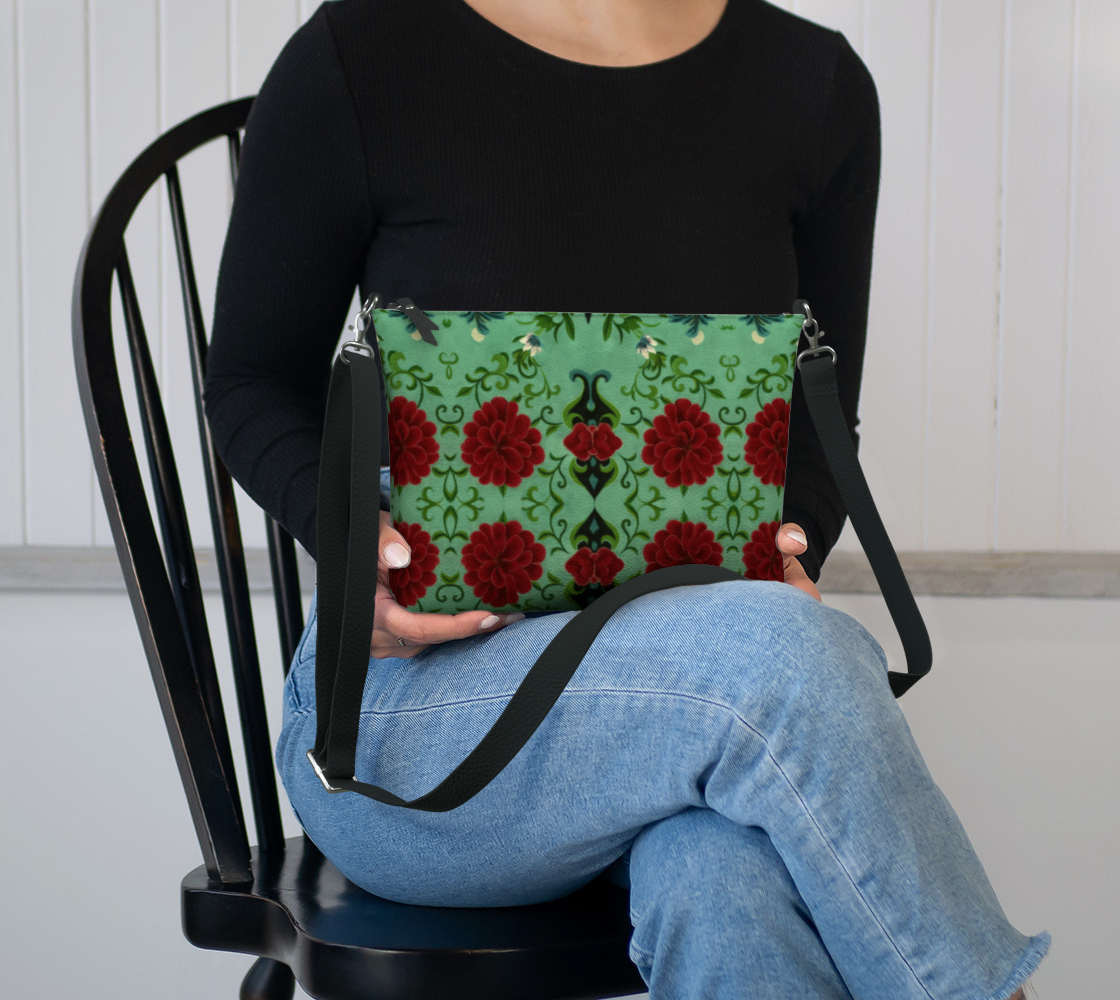 Imperial Peonies Mint Crossbody Purse