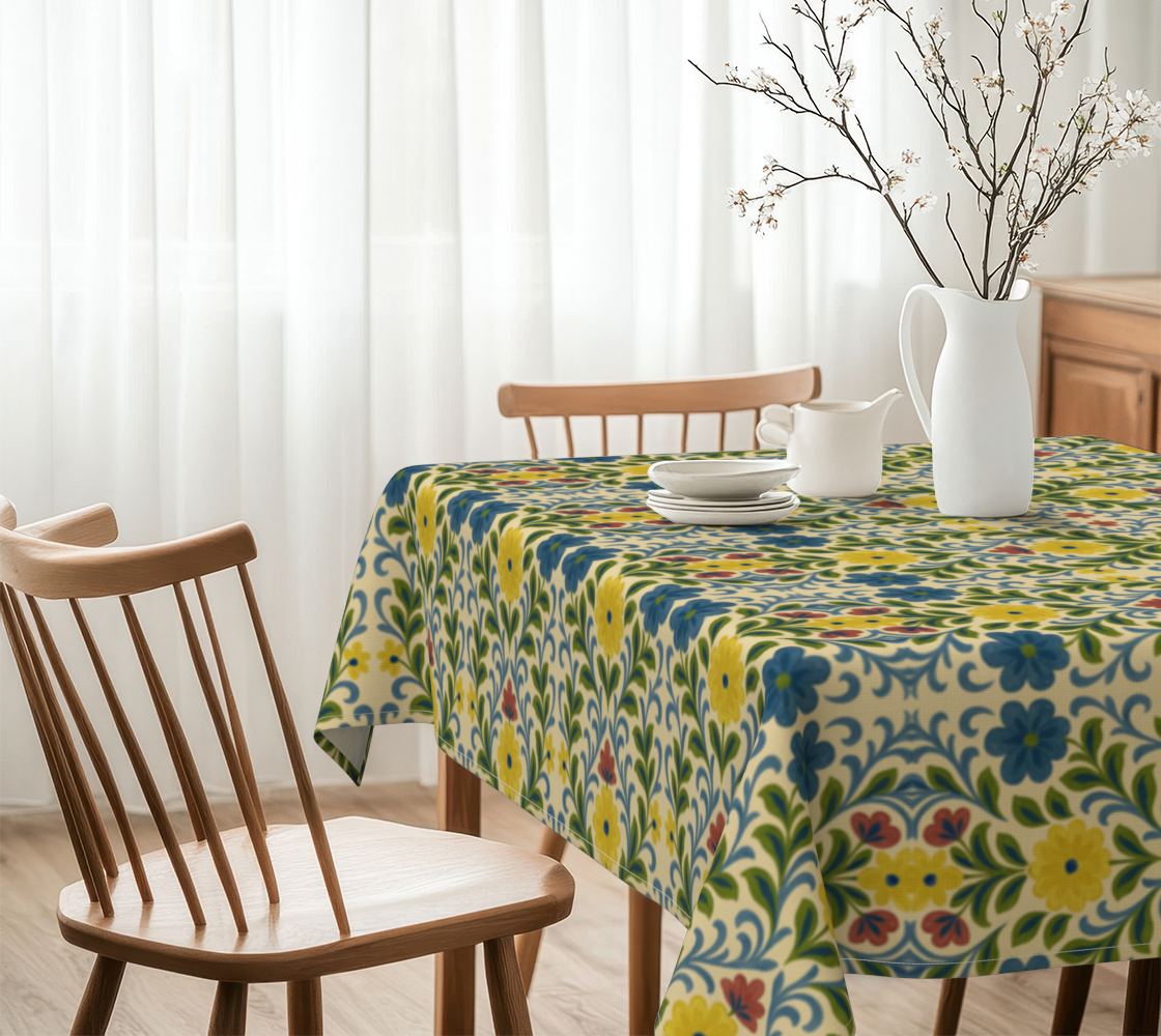 Bring a touch of art to your table with our luxurious cotton sateen tablecloth. Digitally printed for rich, lasting color and crafted with a double rolled hem, it adds effortless elegance to any gathering—from everyday meals to special occasions.