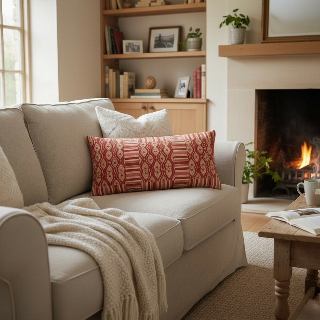 Red Hearts Ikat Striped 12 x 24 Pillow Cover