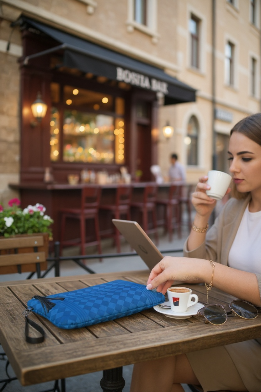 Royal Blue Harlequin Vegan Leather Clutch Wristlet