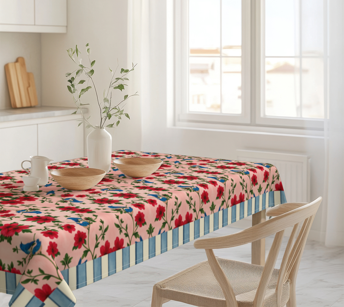 Songbird Bloom Pink with Blue Stripes 60 x 90 Tablecloth