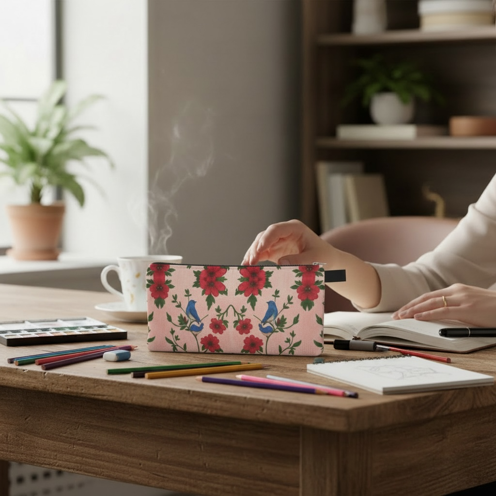 Care: Handwash your pencil case in cold water with phosphate free detergent, or spot clean, print can be scrubbed and washed with soap, do not bleach.