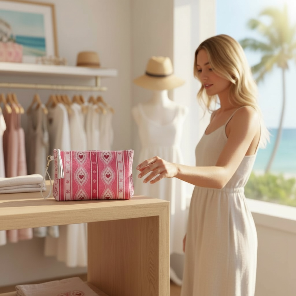 Everything you want in a clutch! Made from textured vegan pebble leather and featuring heavy duty metal hardware, custom printed make-up bags are designed to keep your daily essentials contained while looking absolutely amazing! Printed with permanent UV inks, vegan leather make-up bags are superbly durable.