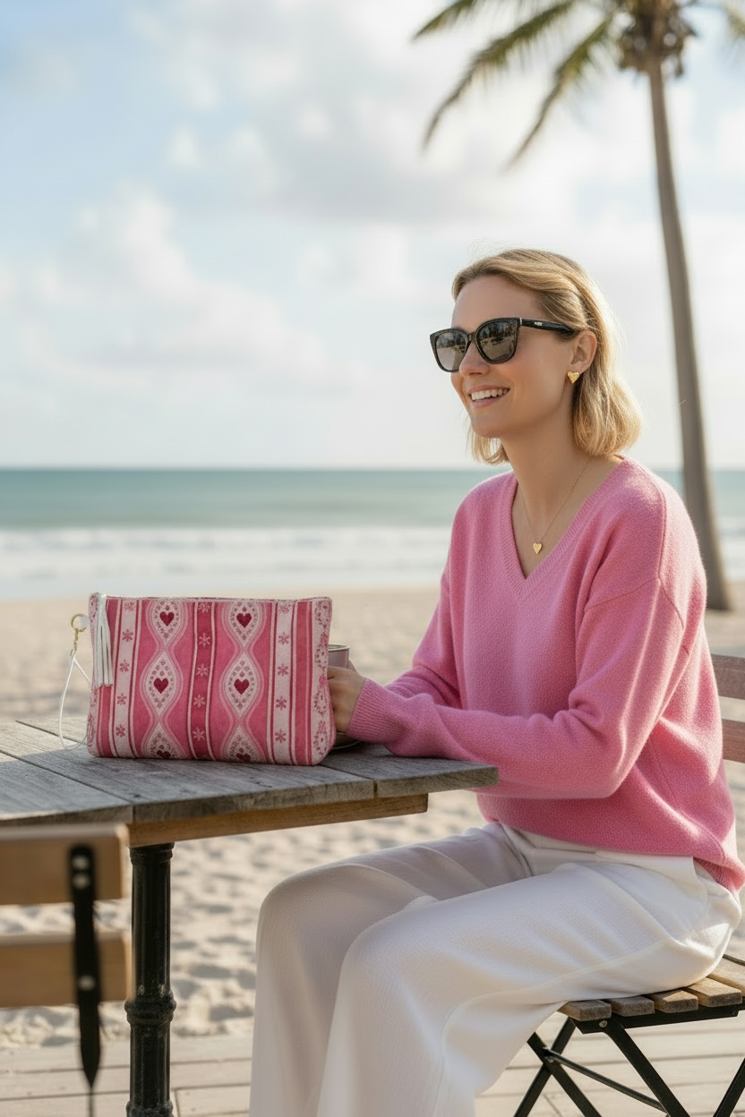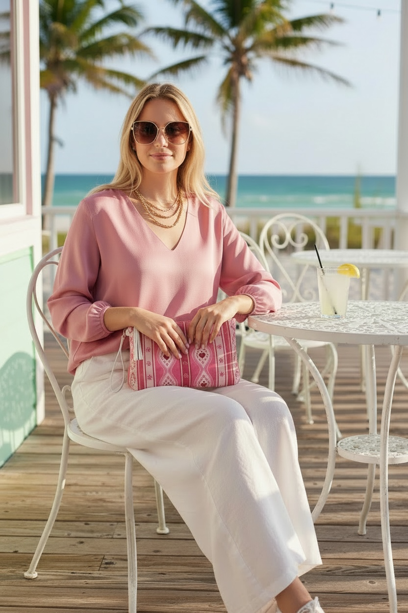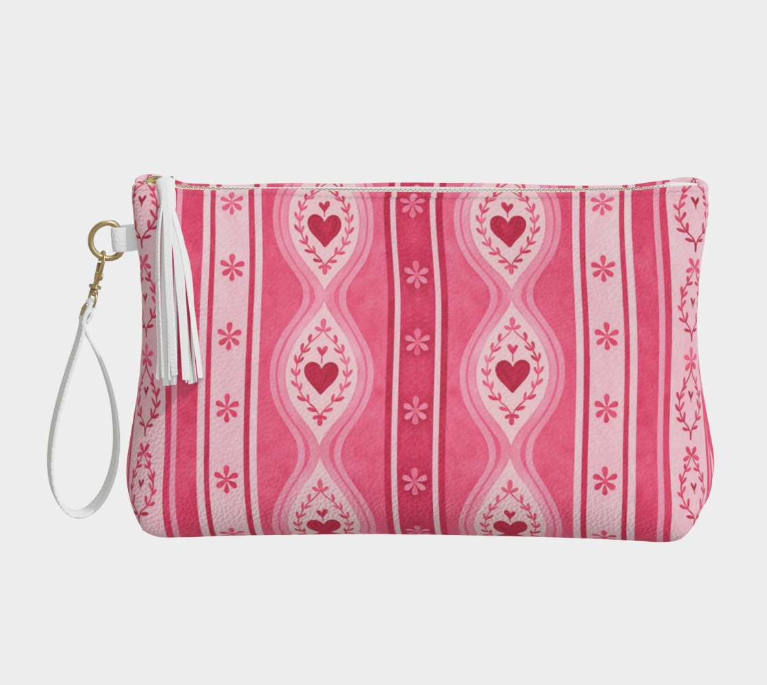 Sweetheart Folk Stripe Vegan Leather Clutch Wristlet