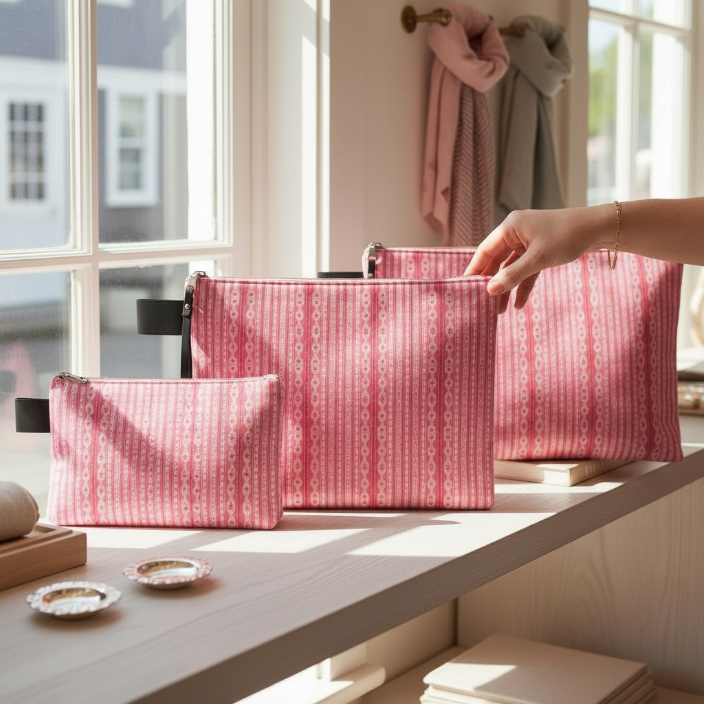 Sweet Heart Folk Stripe Zipper Carry-all Bag